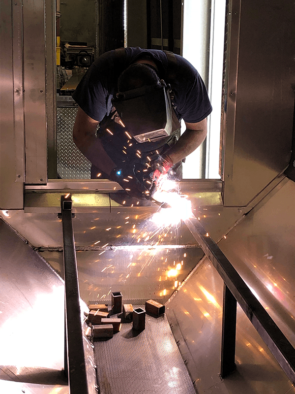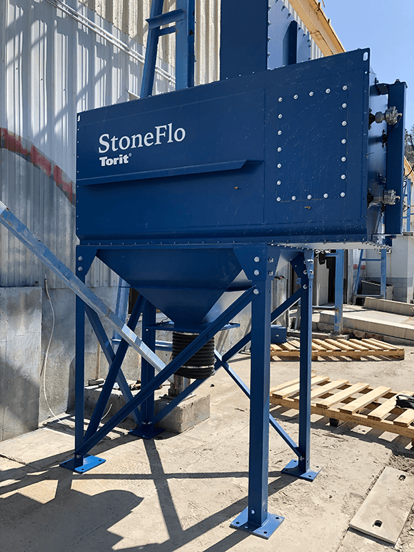 Miles Supply’s planning and installing includes ducting to the StoneFlo Dust collector outside